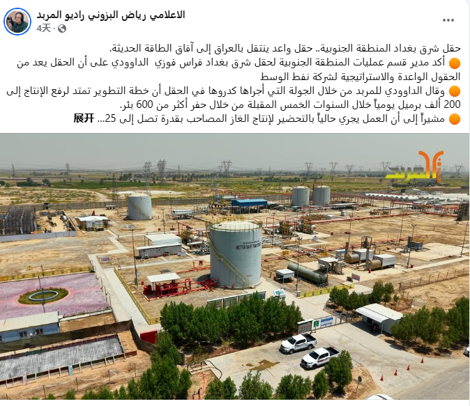 7月,伊拉克主流媒体——米尔巴德电视台(Al Mirbad,亦称南伊拉克电视台 South Iraq Radio & TV Company)对东巴油田开展系列专题报道。作为伊拉克最具影响力的媒体平台之一,本次报道通过电视和社交媒体双渠道同步播出后,受到伊拉克社会各界广泛关注,取得良好社会影响。